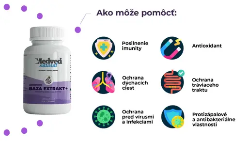 Posledné 2 kusyBAZA EXTRAKT+ obsahuje extrakt z plodov Čiernej bazy, vitamín C, Bacillus subtilis CU1 (probiotický kmeň) a polyfenoly. Tieto zložky spolu tvoria silnú zmes, ktorá môže podporiť vašu imunitu a zlepšiť vaše zdravie.