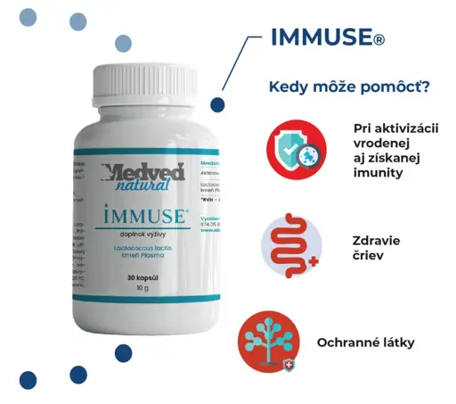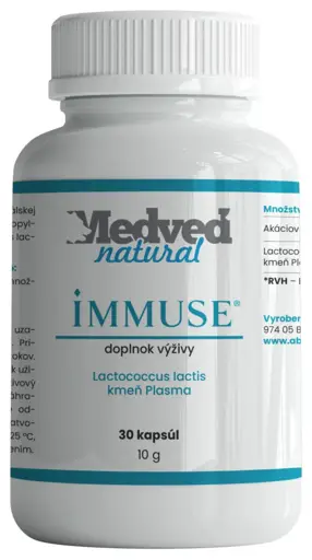 Posledné 3 kusyIMMUSE® obsahuje postbiotikum Lactoccocus lactis kmeň Plasma, ktoré dokázateľne podporuje imunitu.