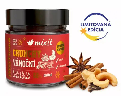Posledných 5 kusovKeď sa povedia Vianoce, väčšina z nás si predstaví stromček, koláčiky a šálku horúceho kakaa. My pridávame ešte jeden dôvod na radosť – limitovanú vianočnú Mixitellu. Krém z jemne mletých kešu a lieskovcov sme dosladili kokosovým cukrom a obohatili o pravú voňavú vanilku. Aby sme navodili tú pravú atmosféru sviatkov, pridali sme škoricu, klinčeky a badián, ktoré voňajú ako čerstvo upečený plech perníkov. A pre štipku prekvapenia sme vmiešali chrumkavé kúsky kataifi cesta a zjemnili ghí. Natrite si ju na čerstvý chlieb, pridajte do kaše alebo ju jednoducho vyjedzte lyžičkou priamo zo skleničky – Mikulášovi to na vás nepovieme. :-)